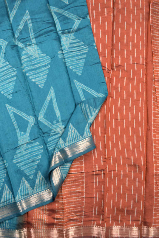 Aqua Blue Mumbai Soft Cotton Geometric Shibori Zari Border Contrast Pallu Saree