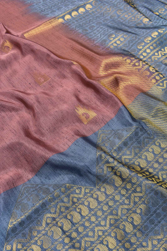 Light Brown Chanderi Silk Cotton Copper Woven and Printed Leaves Saree