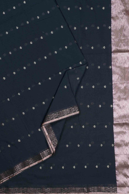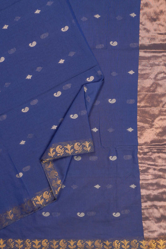 Navy Blue Soft Bengal Cotton Mini Paisely Butta Block Zari Pallu Saree