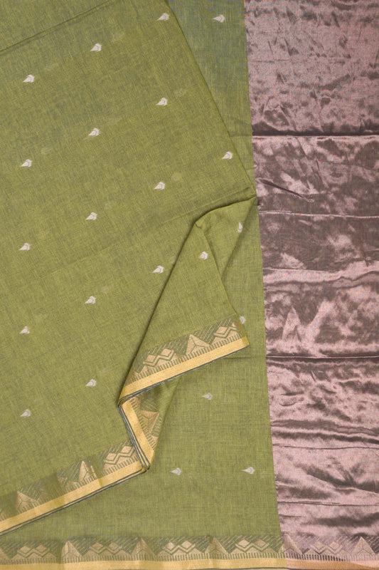 Green Soft Bengal Cotton Mini Tilaka Butta Block Zari Pallu Saree