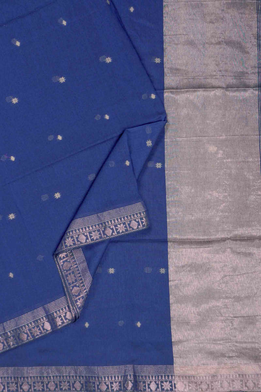 Navy Blue Soft Bengal Cotton Mini Star Butta Block Zari Pallu Saree