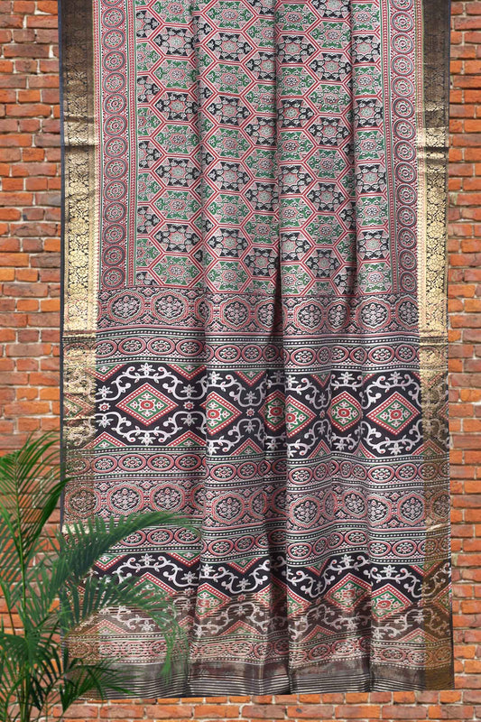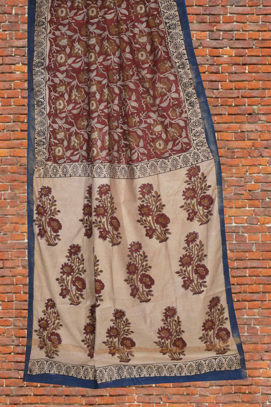 Red Bengal Cotton Floral Kalamkari Style Zari Border Saree