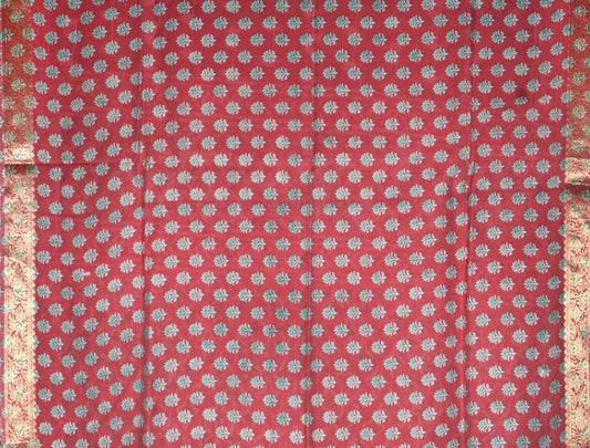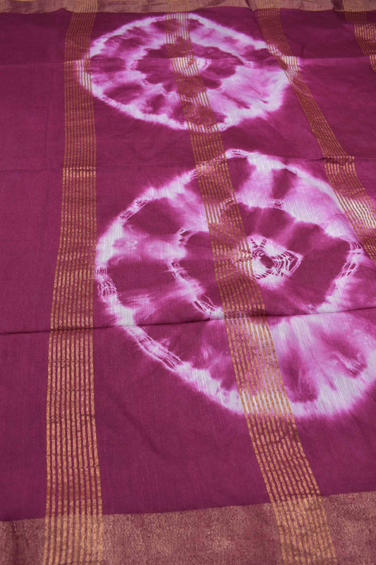 Burgundy Bengal Cotton Batik Style Zari Border Saree