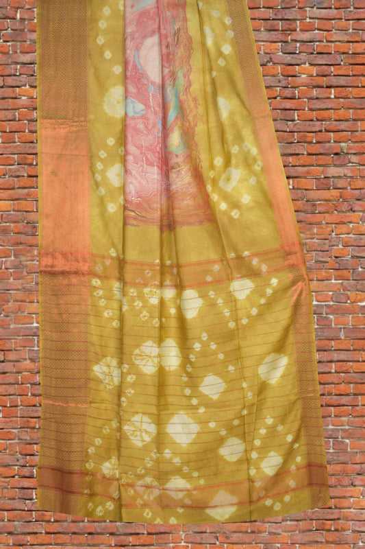 Light Green Bengal Cotton Batik Style Marble Print Saree