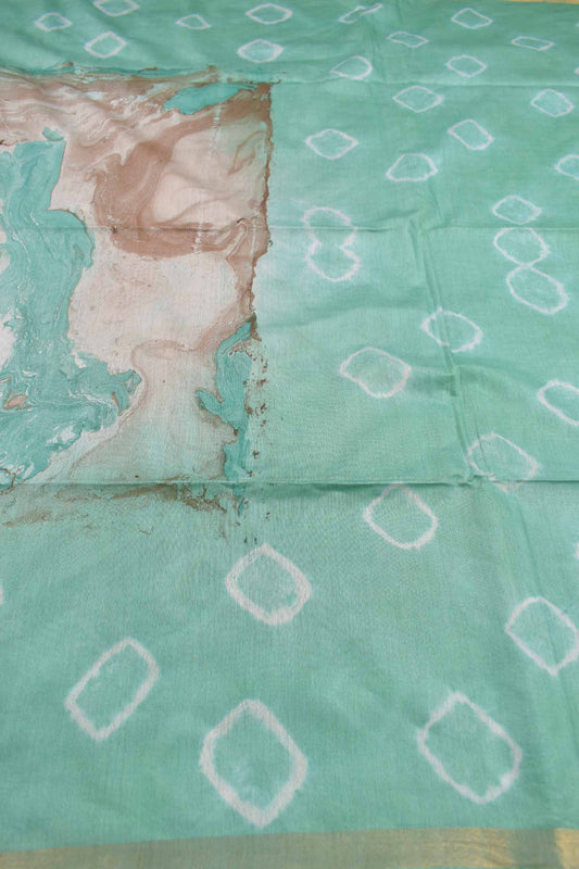 Aquamarine Green Bengal Cotton Batik Style Marble Print Saree
