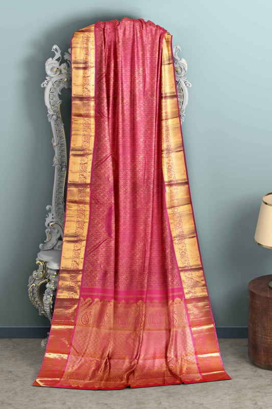 Pink Kanchipuram Bridal Pure Silk Small Checks Butta Self Pallu Saree
