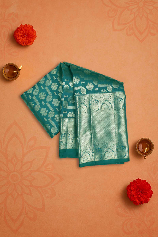 Green Kanchipuram Bridal Pure Silk Floral Fancy Body Zari Border Pallu Saree NAA217