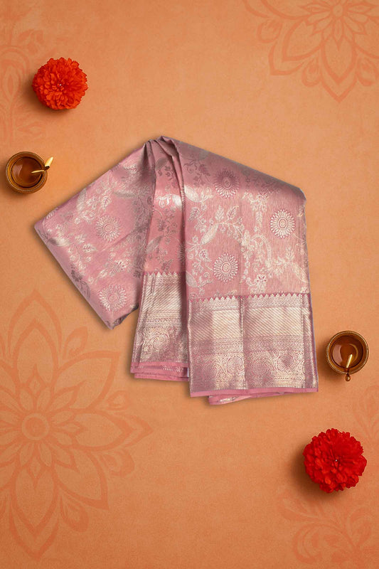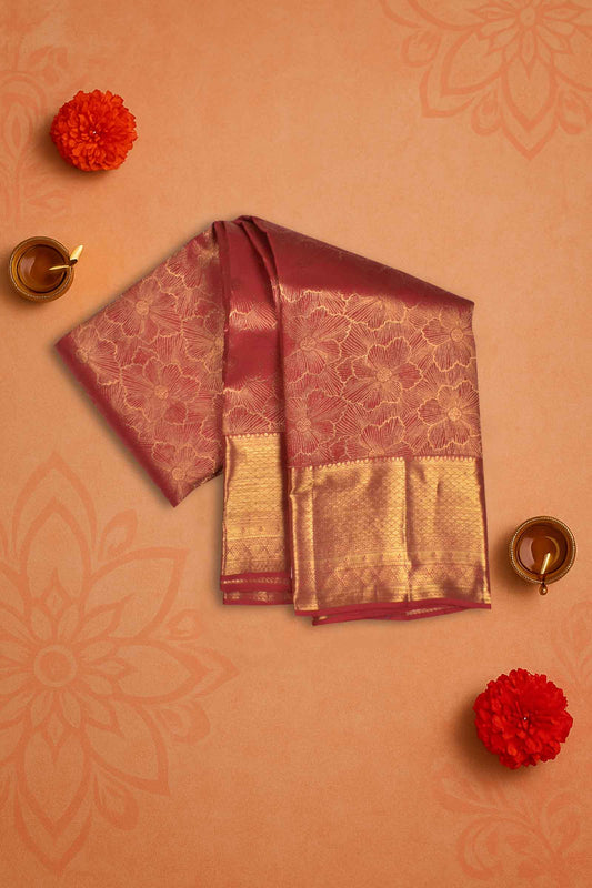 Golden Pink Kanchipuram Bridal Pure Silk Floral Flowers Body Zari Border Pallu Saree NAA219