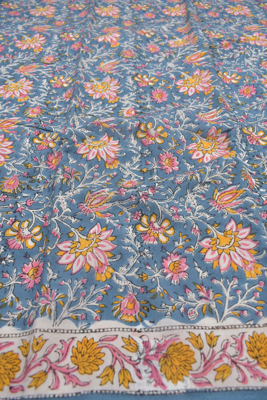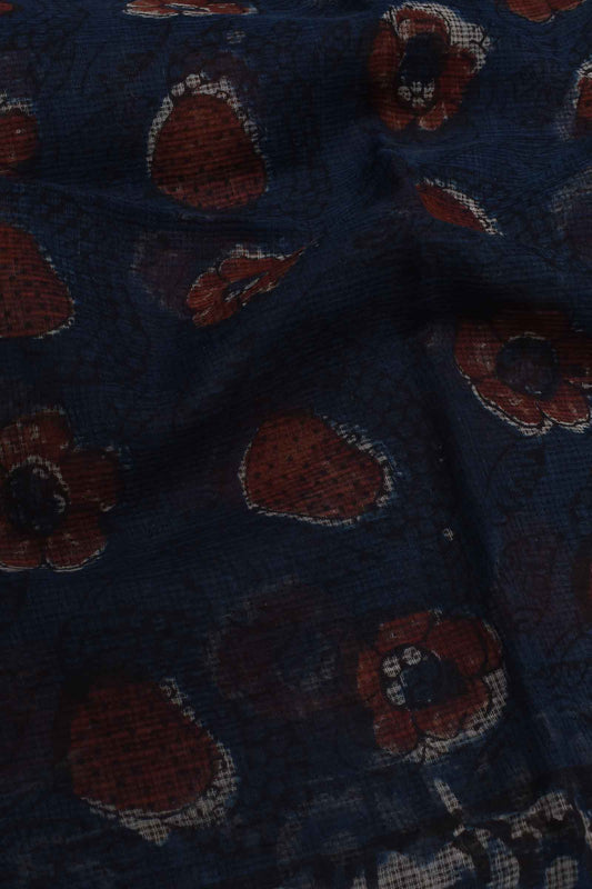 Blue with Red Floral Kota Doriya Hand Block Printed Chudithar Material Dress Suit