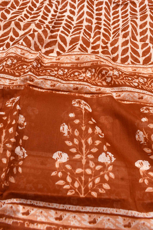White With Brown Jaipur Cotton All Over Floral Printed Chudidhar Material Suit