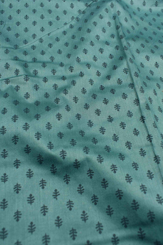 Blue Green Cotton Chudithar Material Ajrakh printed Top Paisely Border Printed Dupatta Suit