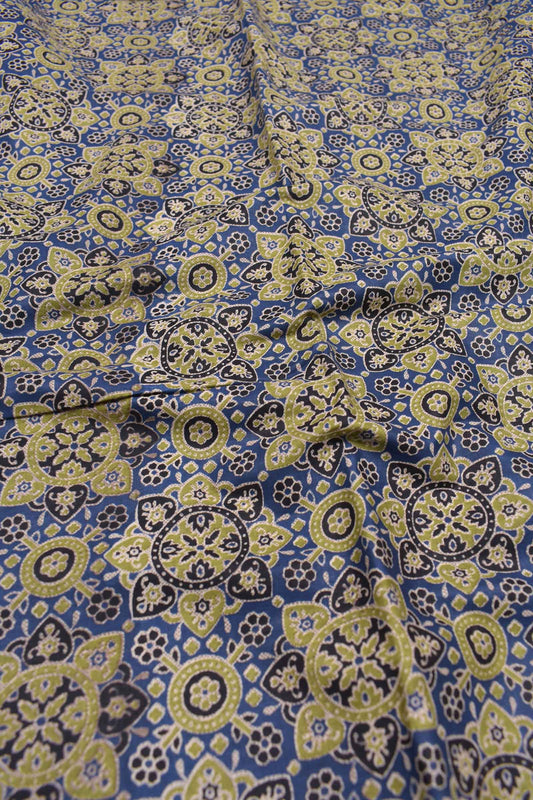 Green and Blue Cotton Chudithar Material Ajrakh Printed Suit