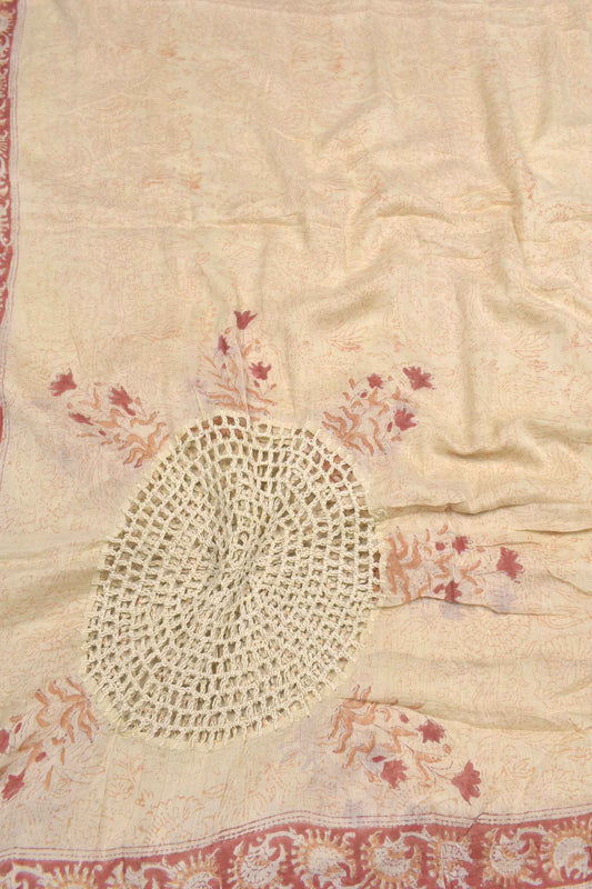 Light Sandal Cotton Chudithar Material Floral Batik Print Top Plain Bottom Printed Crosio Dupatta Suit