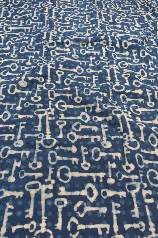 Indigo Blue Jaipur Cotton Chudithar Material Key in the House Suit