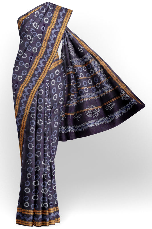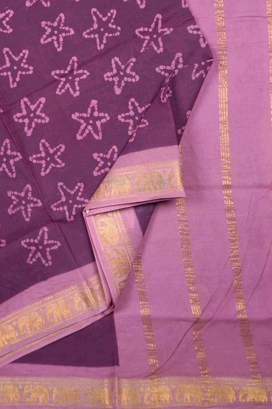 Dark Purple Pure Sungudi Cotton Star Fish Prints Zari Border Saree
