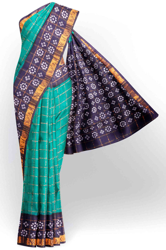 Green Pure Sungudi Cotton Golden Check Floral Rangoli and Zari Border Saree NAA242