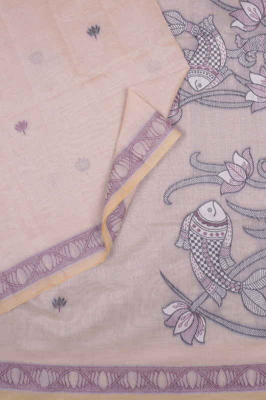 Sandal Bengal Cotton Kamalam Butta Madhubani Inspired Fish Tales Pallu Saree