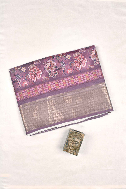 Mauve Taupe Soft Dola Fancy Digital Flora Printed Blouse saree