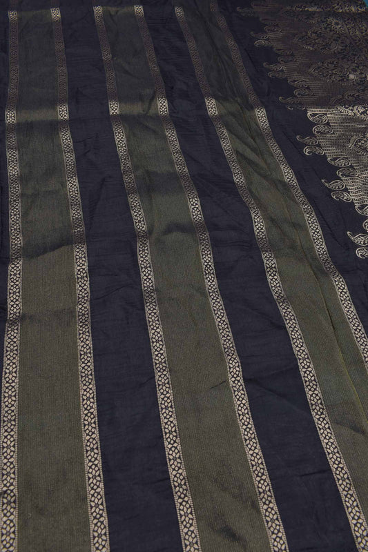 Black With Green Viscose Dola Zari Stripes Paisley Pallu Saree