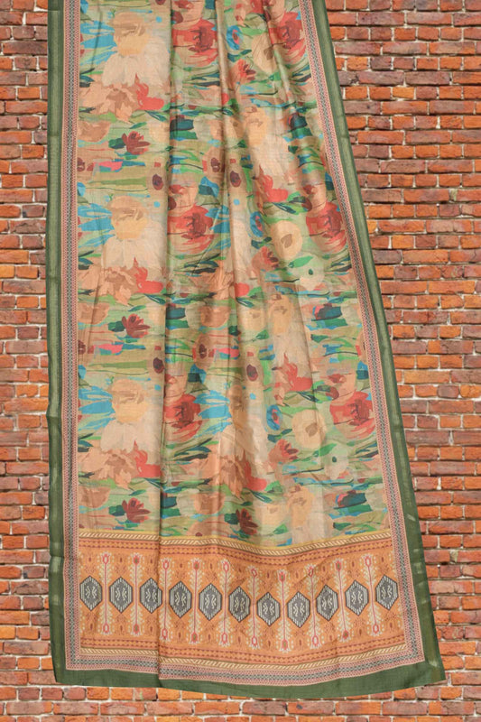 Multi Colour Crush Semi Dola Floral Art Printed Border Saree