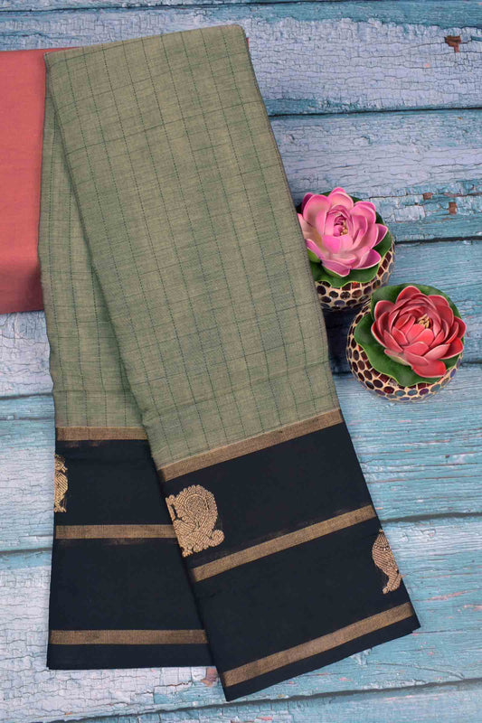 Fancy Grey Kanjivaram Pure Cotton Kattam Butta Vanasingaram Border Zari Pallu Saree
