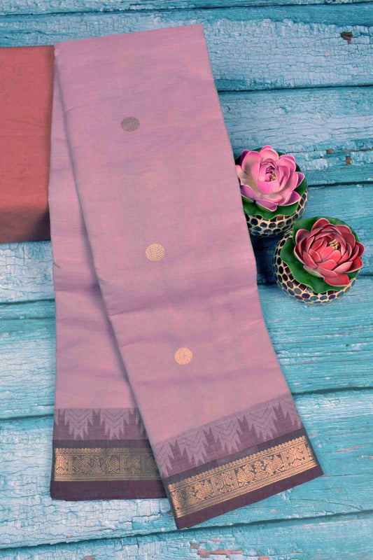Light Voilet Kanjivaram Pure Cotton Butta Zari Temple Border Paisely Pallu Saree