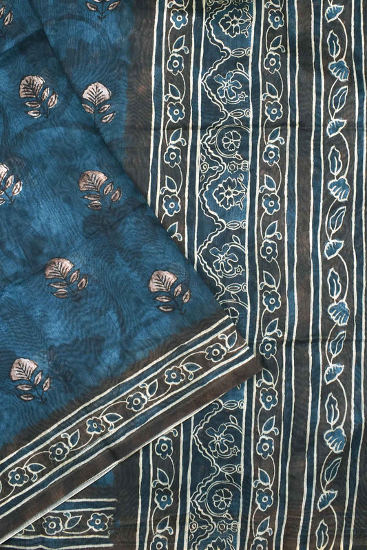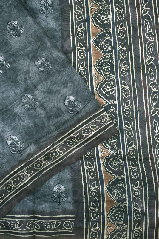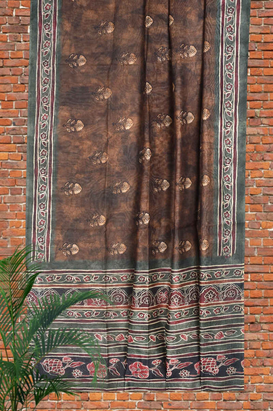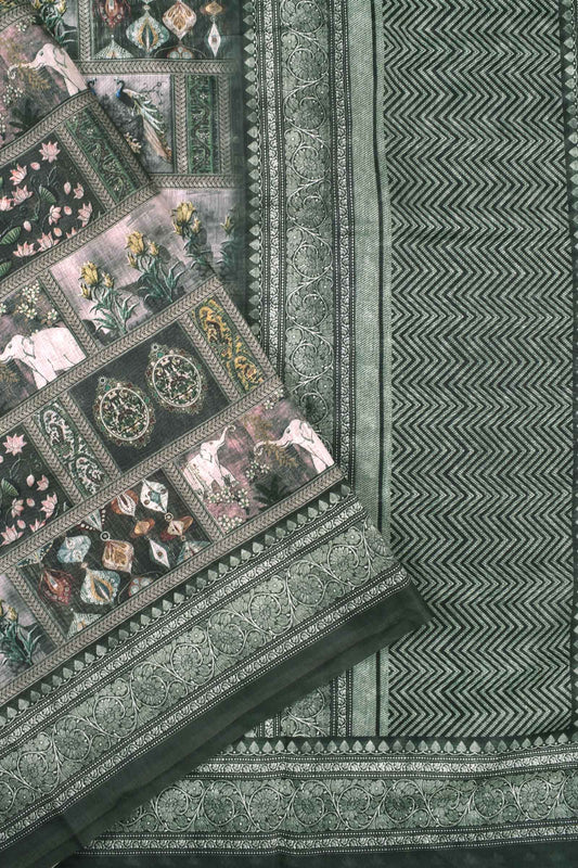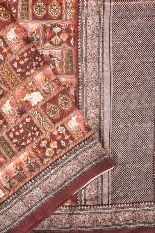 Golden Fancy Semi Silk Deer Design Contrast Pallu Saree