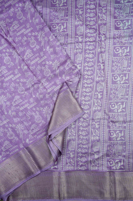Light Violet Semi Dola Warli Print Zari Border Saree
