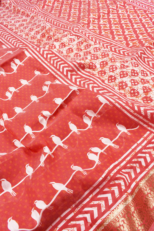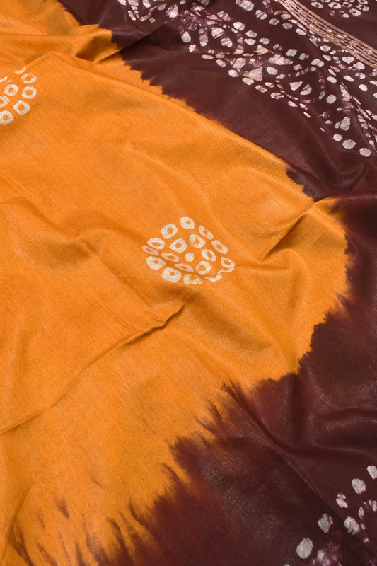 Burgundy Bengal Cotton Batik Style Zari Border Saree