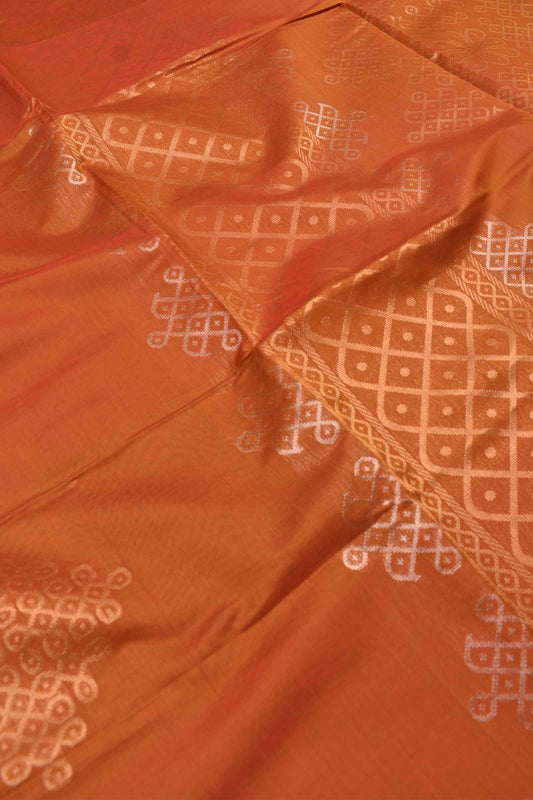 Orange Pure South Cotton Kolam Butta Self Kolam Pallu Saree