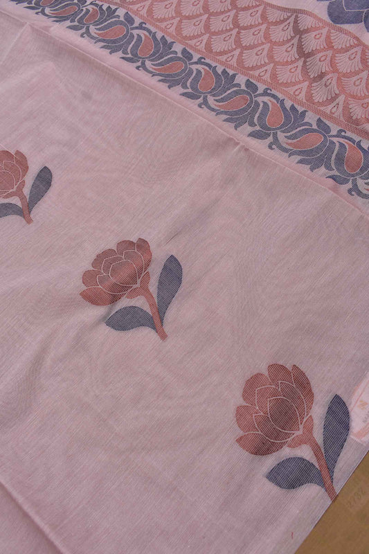Peach Pure South Cotton Multi Thread Flower Butta Saree