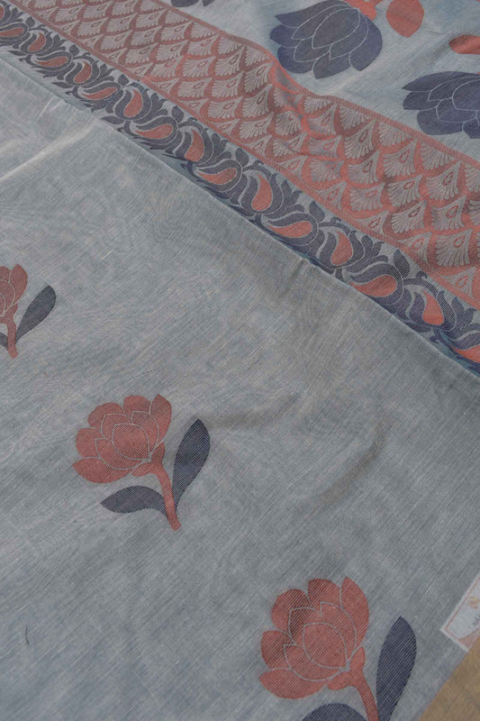 Grey Pure South Cotton Peacock Rich Pallu Saree