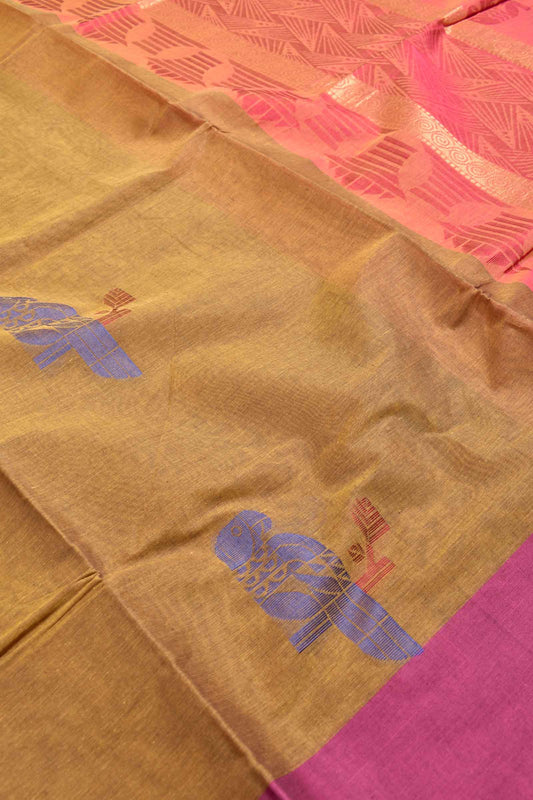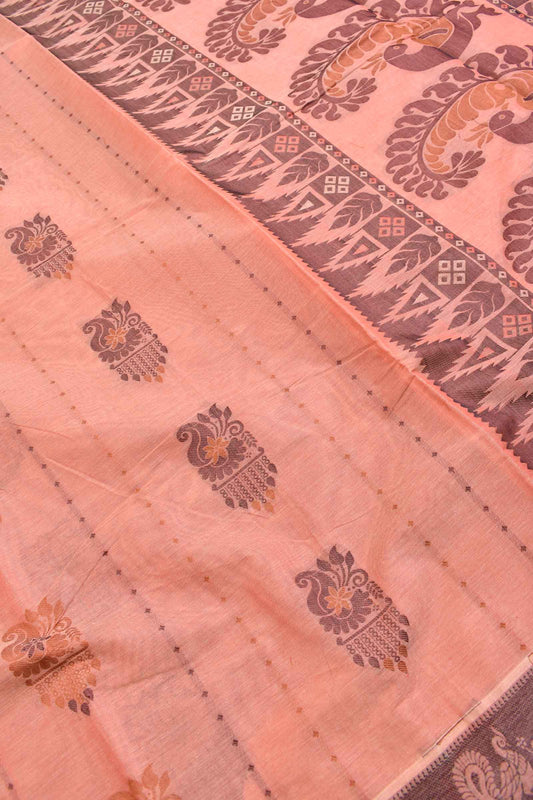 Peach Pure South Cotton Peacock Rich Pallu Saree