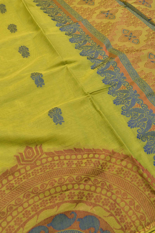 Green Pure South Cotton Multi Jari Butta Rich Pallu Saree