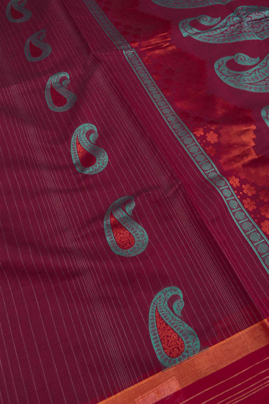Meroon Pure South Cotton Mango Rich Pallu Saree