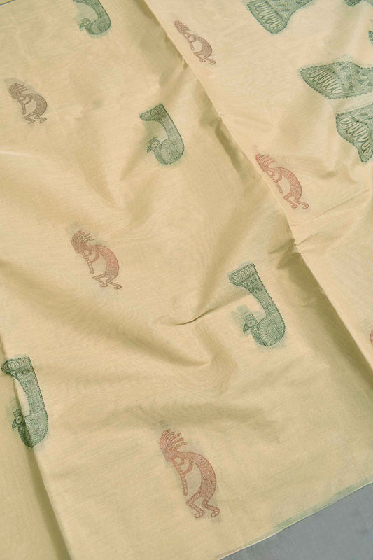 Green Pure South Cotton Dancing Figure Bird Pallu Saree