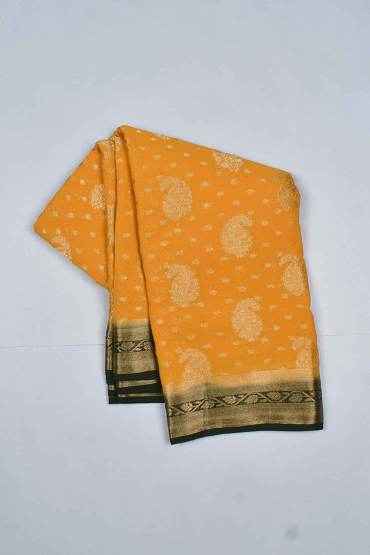 Yellow Georgette Mango Butta Contrast Pallu Saree