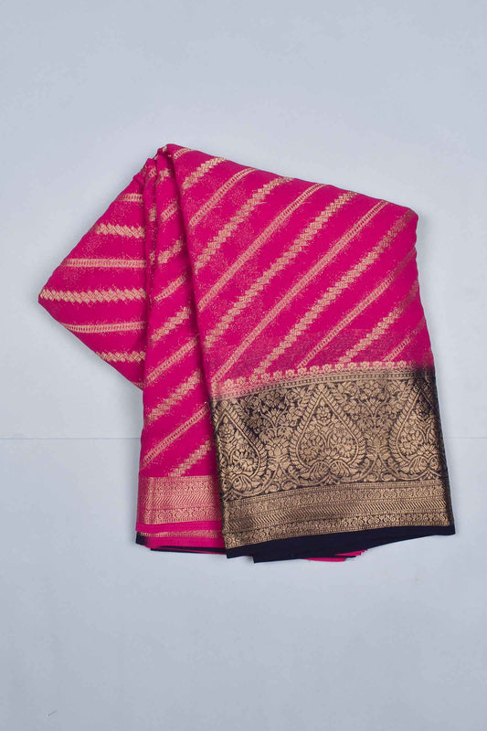 Hot Pink Georgette Mango Butta Contrast Pallu Saree