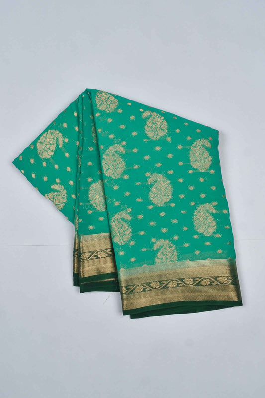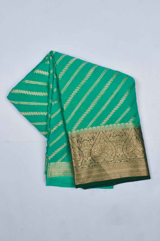 Green Georgette Gold Stripes Contrast Pallu Big Border Saree