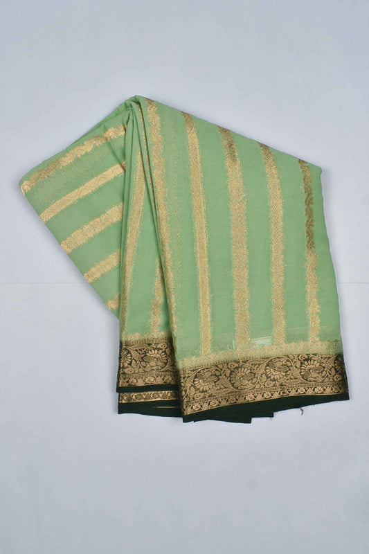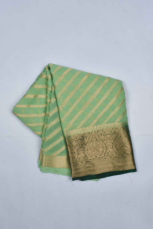 Light Green Georgette Gold Stripes Contrast Pallu Saree