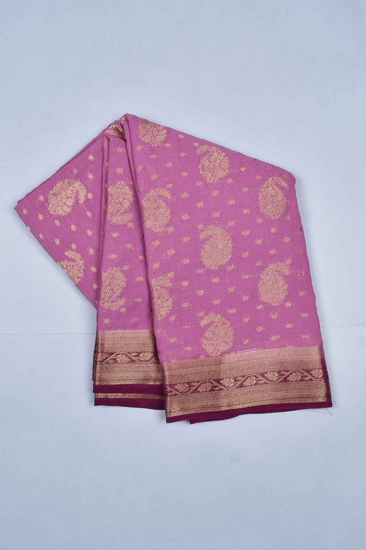 Violet Georgette Mango Butta Contrast Pallu Saree