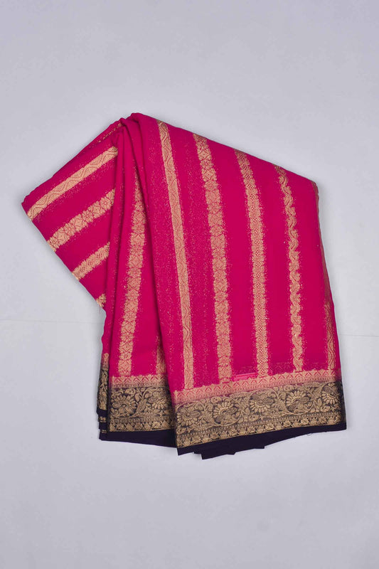 Pink Georgette Gold Stripes Contrast Pallu Big Border Saree