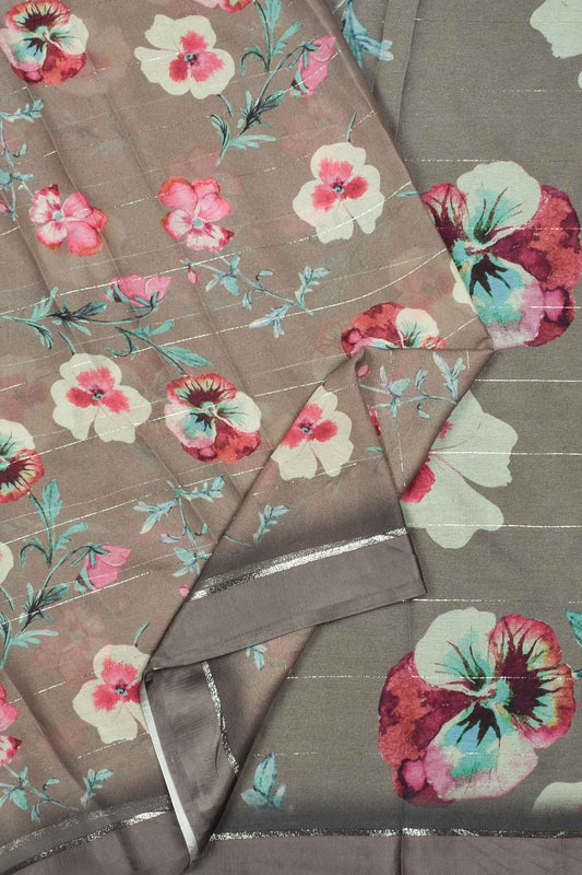 Grey Georgette Jari Lines Printed Satin Border Saree