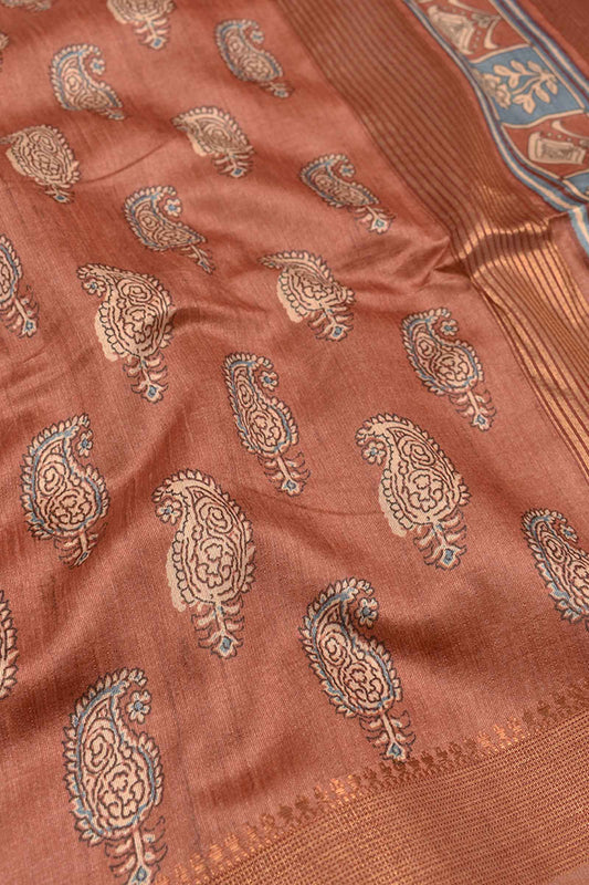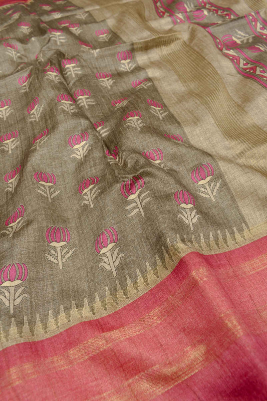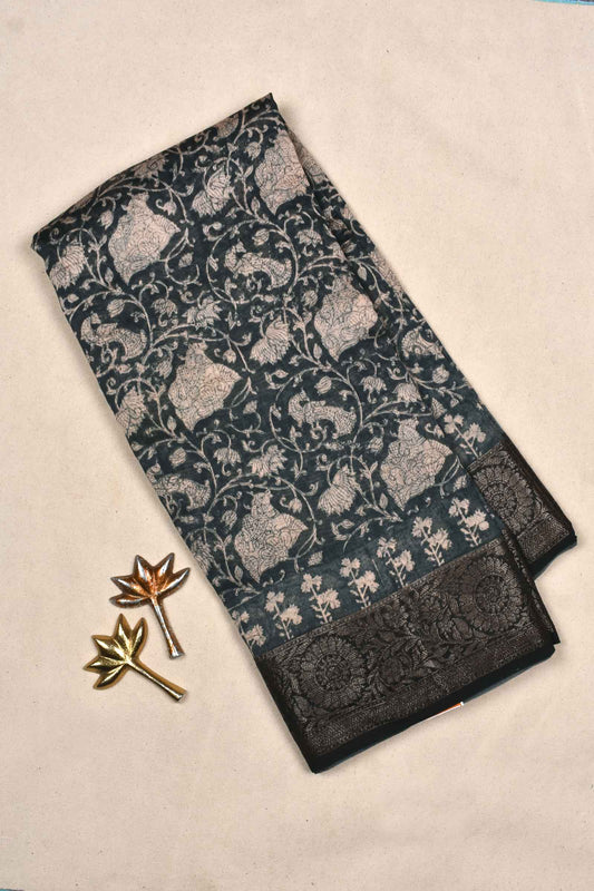 Grey Soft Viscose Digital Peacock Jaal Print Saree