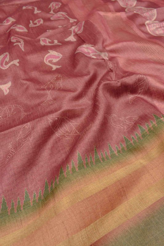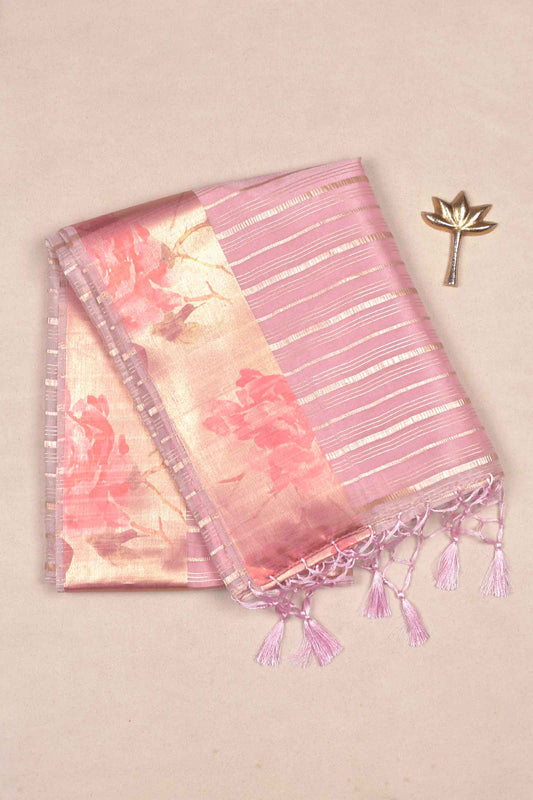 Pink Malai Silk Digital Bandhini Style Print Saree
