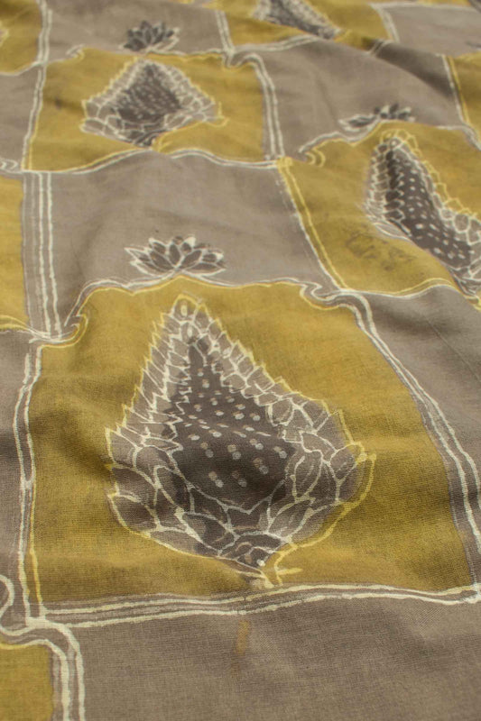 Green And Grey Pure Soft Cotton Vanaspati Handblock Print Saree