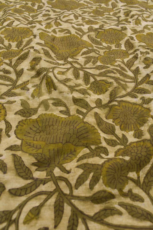 Green Pure Soft Cotton Vanaspatti Handblock Flower Garden Printed Saree