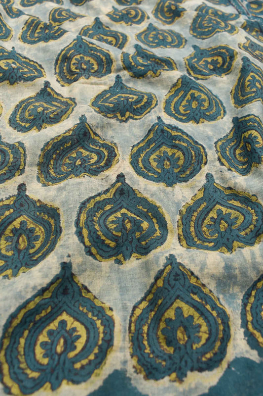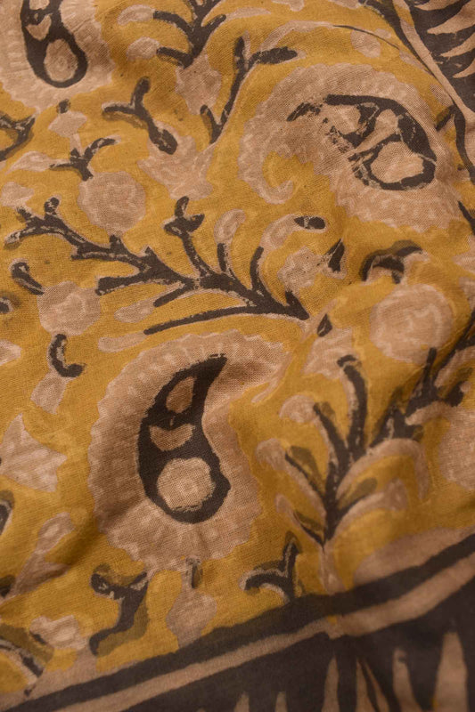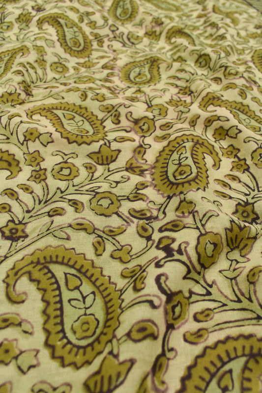 Green Pure Soft Cotton Vanaspatti Handblock Paisely Print Saree