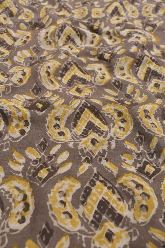 Light Brown Pure Soft Cotton Vanaspatti Handblock Fir Cone Printed Saree