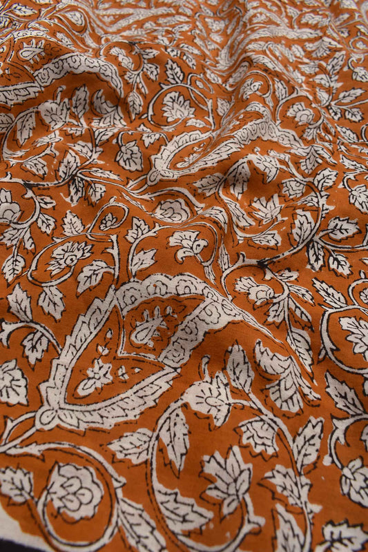 Orange Pure Soft Cotton Vanaspatti Handblock Paisely Mango Printed Saree